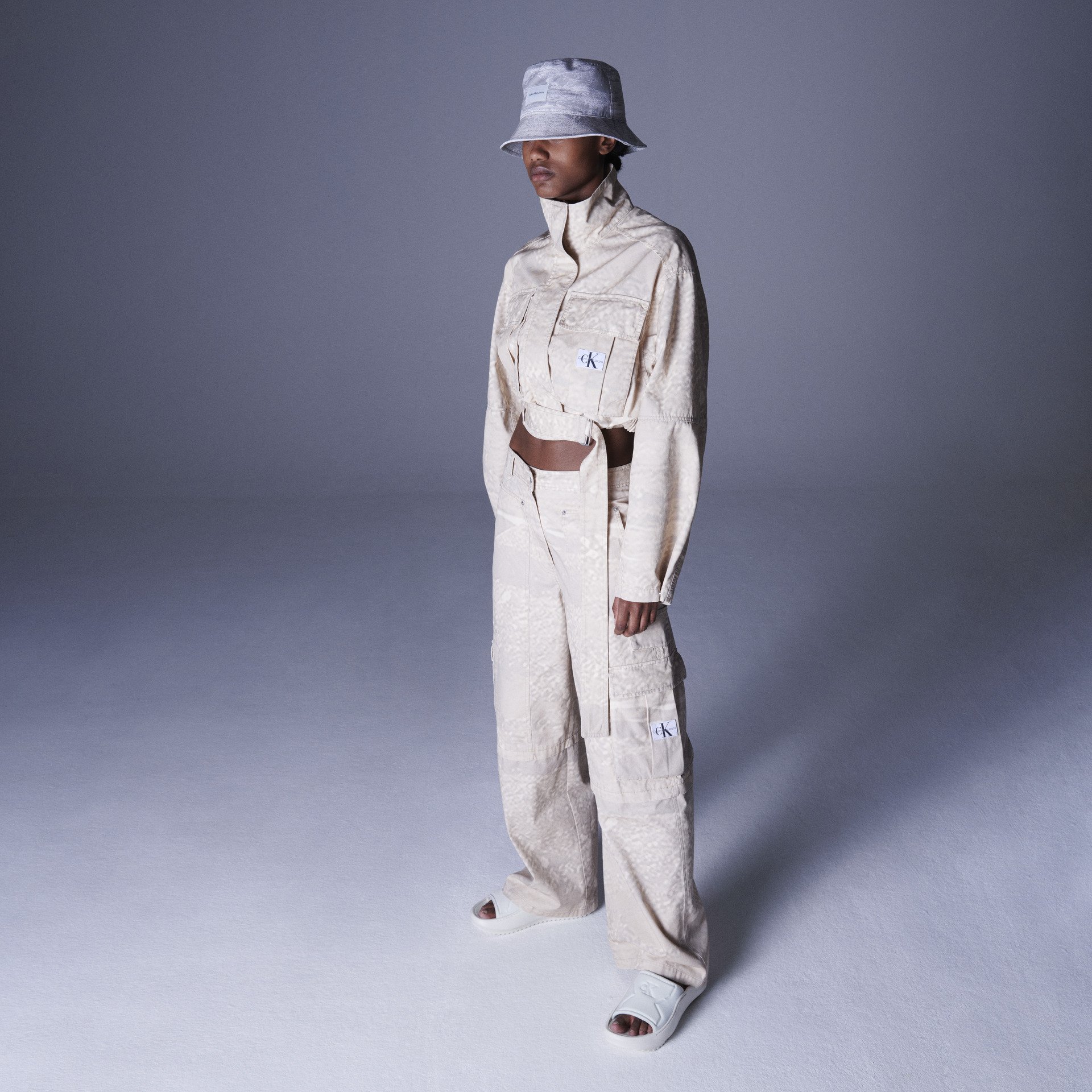 ミニマルなデザインのTシャツが豊富なのもCalvin Kleinならでは。クロップ丈のTシャツはボトムスを選ばずともヘルシーなスタイルアップが叶う。アーシーなカラーのタイダイTシャツと、ホワイトのデニムを合わせれば、初夏を先取りしたトーナルルックに。